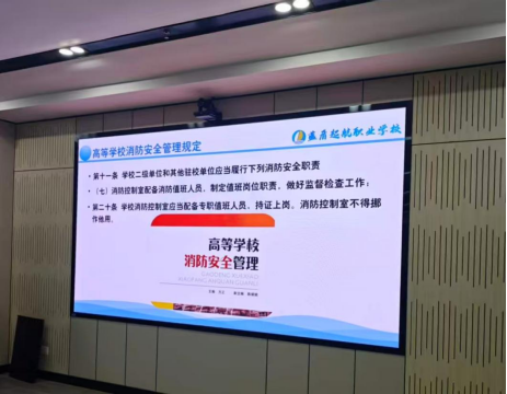 会议伊始,学校特邀武汉蓝盾消防培训公司的专业教官开展消防业务培训。培训通过理论讲解与案例分析,重点强化了参会人员的消防控制主机操作使用及应急处置能力。