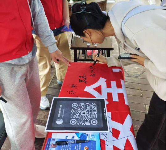 在“国家安全观宣传活动主题签字”环节,师生们郑重地在横幅上签下自己的名字,许下了维护国家安全的庄严承诺,展现了湖大师生维护国家安全的责任与担当。